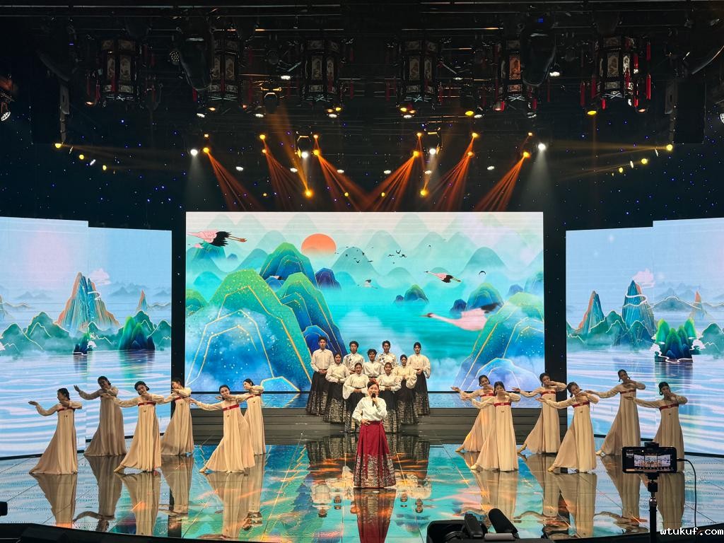 泰山雅乐团师生表演了原创歌曲《登泰山》,以“诗、乐、舞”融合的艺术形式,诠释泰山红色文化内涵。表演者挥拍吟唱、踏歌起舞,尽显守正创新之姿。